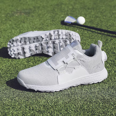 Elite-level. The hybrid outsole with 7 removable spikes delivers powerful grip on wet turf, slopes, and uneven lies, so your stance stays solid during every swing.